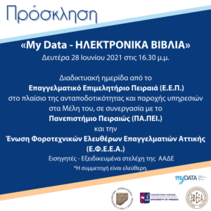 Το Επαγγελματικό Επιμελητήριο Πειραιά διοργανώνει Διαδικτυακή Ημερίδα στο πλαίσιο της ανταποδοτικότητας και παροχής υπηρεσιών στα μέλη του.