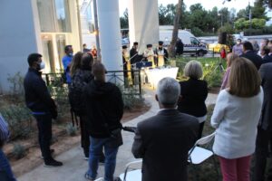 Στη λιτή τελετή που ευλόγησε ο Μητροπολίτης Ν. Σμύρνης Συμεών, παρέστησαν ο Υφ. Υποδομών Γ. Καραγιάννης, η Υφ. Μετανάστευσης και Ασύλου Σ. Βούλτεψη, οι βουλευτές της ΝΔ Χ. Θεοχάρης, Γ. Καλλιάνος, Α. Καραμανλή, Δ. Χατζηδάκης (πρώην Δήμαρχος Π. Φαλήρου), η βουλευτής του ΜΕΡΑ 25 και Πρόεδρος του ΣΕΓΑΣ Σ. Σακοράφα, ο Βουλευτής της Ελληνικής Λύσης Δ. Βαγενάς, ο Δήμαρχος Αλίμου Α. Κονδύλης, ο Αντιδήμαρχος Αγ. Δημητρίου Α. Αδαμόπουλος, η Αντιπεριφερειάρχης Νοτίου Τομέα Δ. Νάνου, η Αντιπεριφερειάρχης Πολιτισμού Μ. Βιδάλη, η Αντιπεριφερειάρχης Καινοτομίας και Επιχειρηματικότητας Κ. Αδαμοπούλου, ο Διοικητής Τροχαίας Καλλιθέας Ε. Αρβάλης, ο Εκτελεστικός Γραμματέας της Περιφέρειας Ι. Σελίμης, ο σύμβουλος οδικής ασφάλειας της Περιφέρειας Κ. Λογοθέτης, περιφερειακοί σύμβουλοι, στελέχη του Υπουργείου Υποδομών, των όμορων Δήμων και της Περιφέρειας.