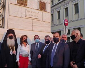 Η εκδήλωση ολοκληρώθηκε στην είσοδο του Επιμελητηρίου, με την Επιμνημόσυνη Δέηση από τον Σεβασμιότατο Μητροπολίτη Πειραιώς, κ.κ. Σεραφείμ, και την Τέλεση των Αποκαλυπτηρίων του Μνημείου των Φιλικών.