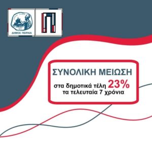 Συνολικά, τα τελευταία 7 χρόνια έχουμε μειώσει τα δημοτικά τέλη κατά 23%.
