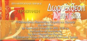 Την Παρασκευή 3 Δεκεμβρίου θα πραγματοποιηθούν τα εγκαίνια της Δωροέκθεσης της Ιεράς Μητροπόλεως Πειραιώς.