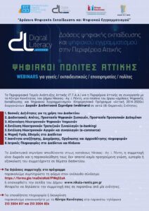 Τα σεμινάρια πραγματοποιούνται στο πλαίσιο του έργου «Δράσεις Ψηφιακής Εκπαίδευσης και Ψηφιακού Εγγραμματισμού» (Επιχειρησιακό Πρόγραμμα «Αττική 2014-2020»).