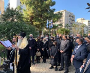 Η επιμνημόσυνη δέηση τελέστηκε στον ανδριάντα του Παναγιώτη Βλαχάκου, στην πλατεία Κωνσταντίνου Καραμανλή (πρώην πλατεία Τερψιθέας), χοροστατούντος του Σεβασμιωτάτου Μητροπολίτη Πειραιώς κ. Σεραφείμ.