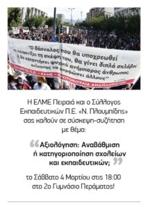 Η προγραμματισμένη κινητοποίηση στο ΥΠΑΙΘ στις 3/3, με αίτημα τη δημιουργία Τμήματος Ένταξης στο Πέραμα μετατίθεται για την επόμενη βδομάδα, λόγω της τραγωδίας στα Τέμπη.