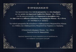 Ορκωμοσία νέου δημάρχου Νίκαιας – Ρέντη