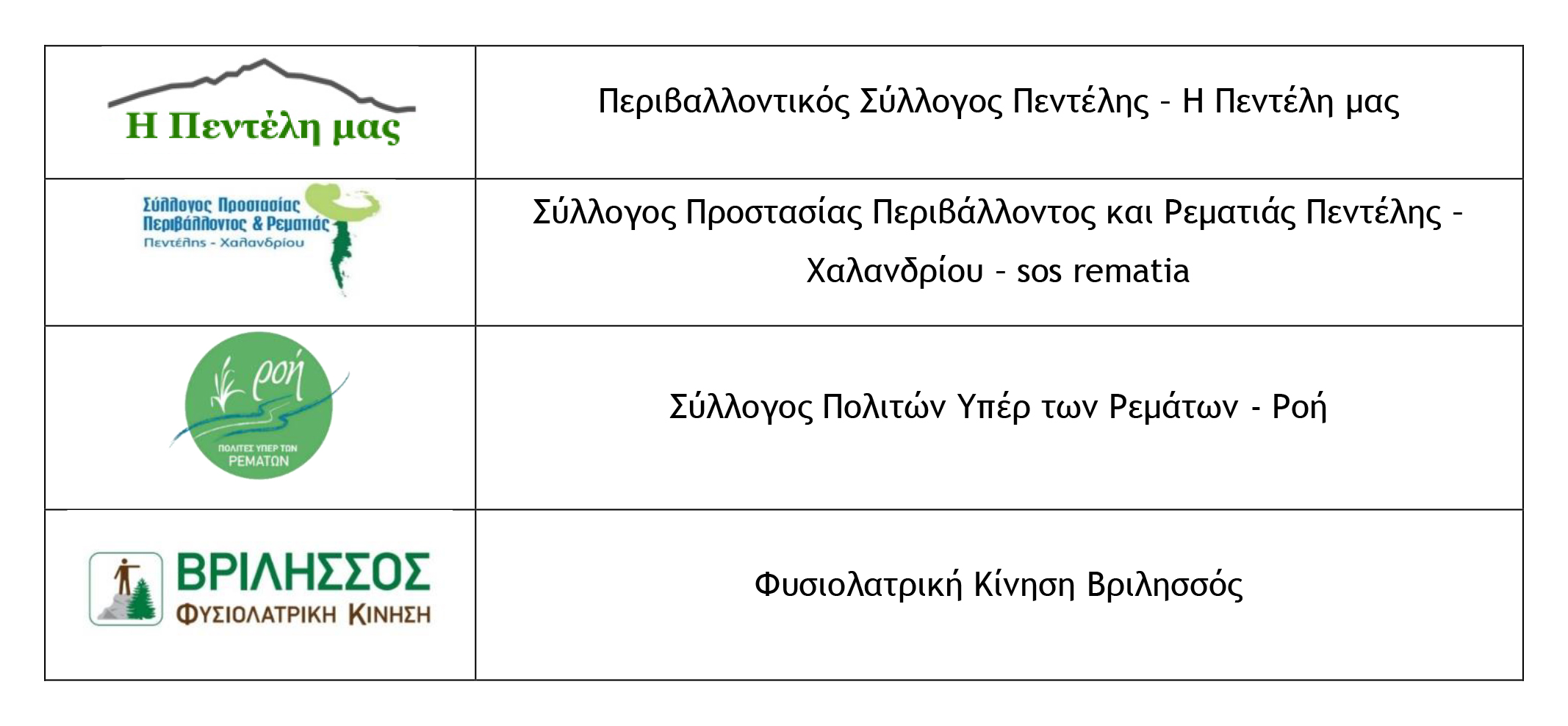 Αντιπροσωπείες των Διοικητικών Συμβουλίων Περιβαλλοντικών Συλλόγων της περιοχής συναντήθηκαν στις 14/06/2025 και αποφάσισαν τον συντονισμό των δράσεών τους για τον τερματισμό της λειτουργίας παράνομης πίστας enduro και των εκτός δρόμου διελεύσεων τροχοφόρων στις πλαγιές του Πεντελικού και του λόφου Θεόκλητου στα Βριλήσσια καθώς και για άλλα περιβαλλοντικού ενδιαφέροντος θέματα της περιοχής των Δήμων Βριλησσίων, Κηφισιάς, Πεντέλης και Χαλανδρίου.»