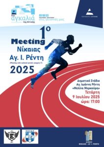 Το “1ο Meeting Νίκαιας – Αγ. Ι. Ρέντη 2025” έρχεται την Τετάρτη 9 Ιουλίου στο Δημοτικό Στάδιο “Μελίνα Μερκούρη”!