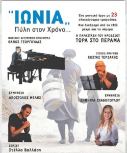 Πρώτη ημέρα έναρξης του φθινοπωρινού Πολιτιστικού Φεστιβάλ, το Σάββατο 30/8, με την ξεχωριστή μουσική παράσταση «Ιωνία Πύλη στο Χρόνο: μία διαδρομή από το 1922 μέχρι σήμερα».